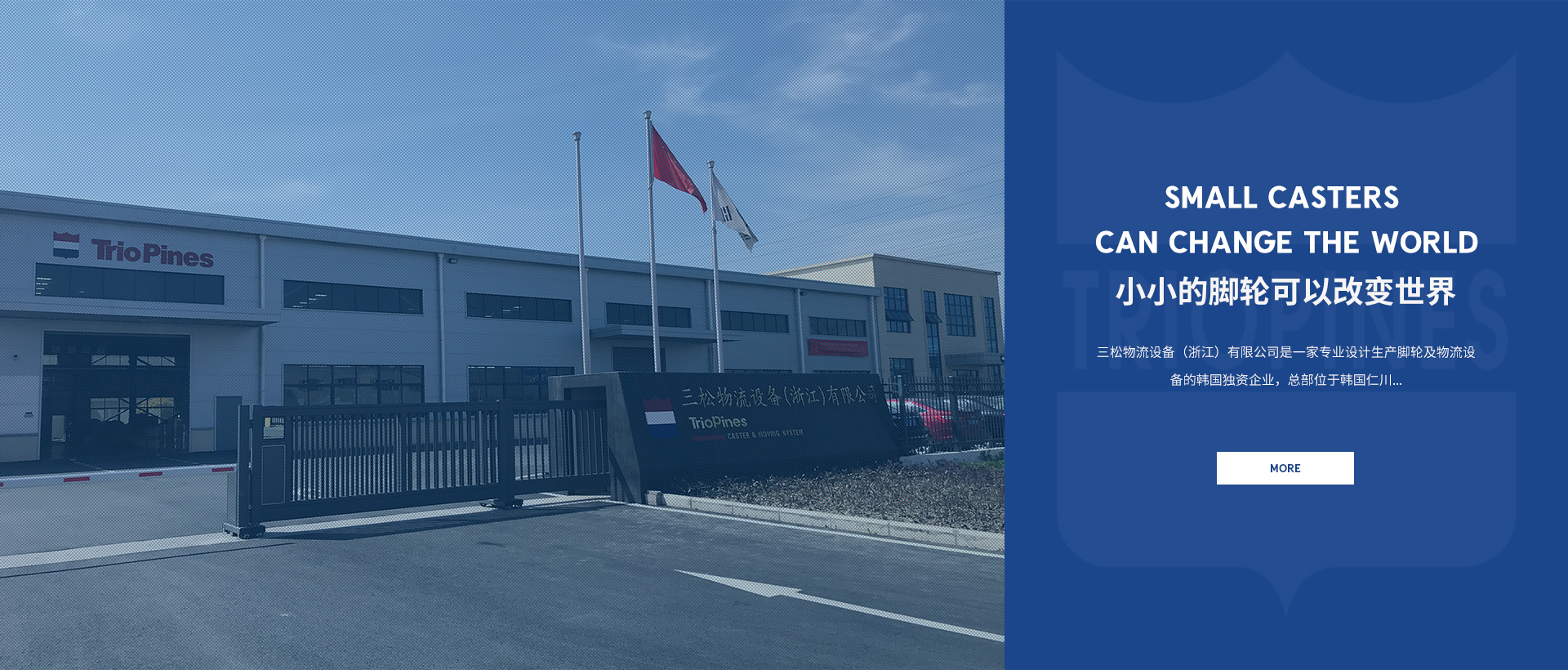 三松物流設(shè)備(浙江)有限公司是一家專(zhuān)業(yè)設(shè)計(jì)生產(chǎn)腳輪及物流設(shè)備的韓國(guó)獨(dú)資企業(yè),總部位于韓國(guó)仁川,已有36年的腳輪生產(chǎn)歷史,在美國(guó)擁有4家銷(xiāo)售公司。目前已生產(chǎn)出20多種系類(lèi),一千多種不同規(guī)格的腳輪產(chǎn)品。